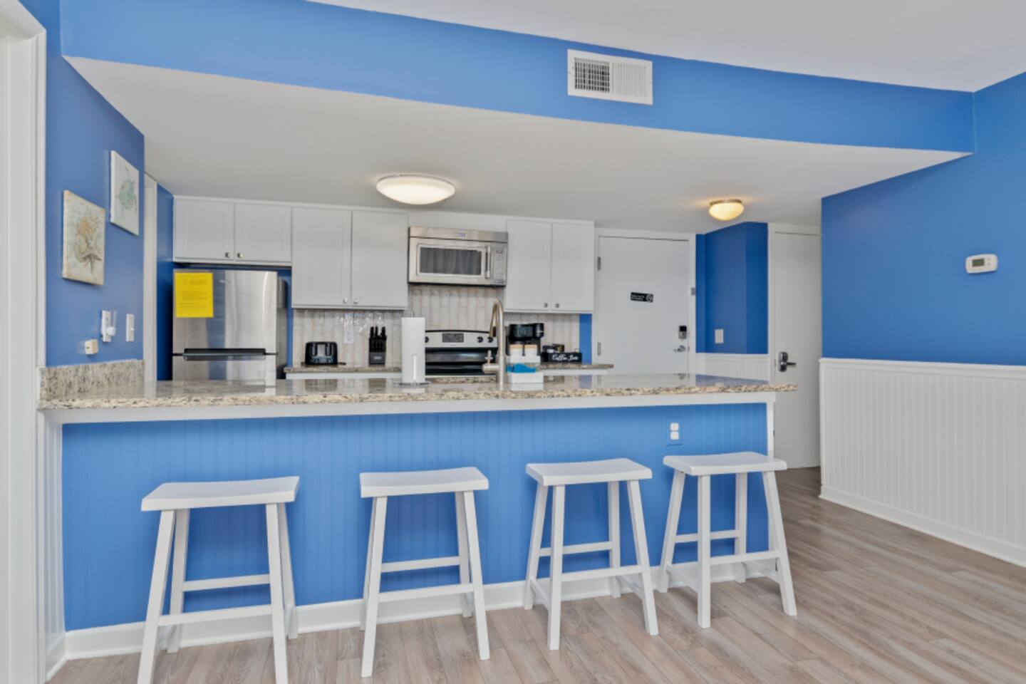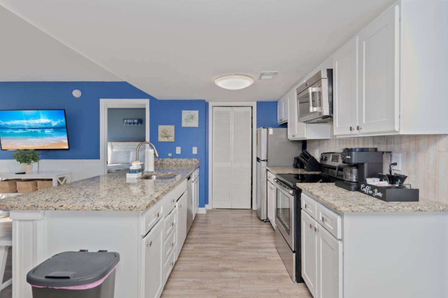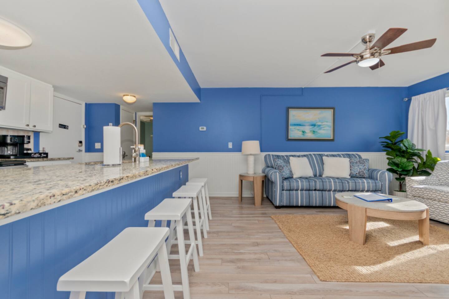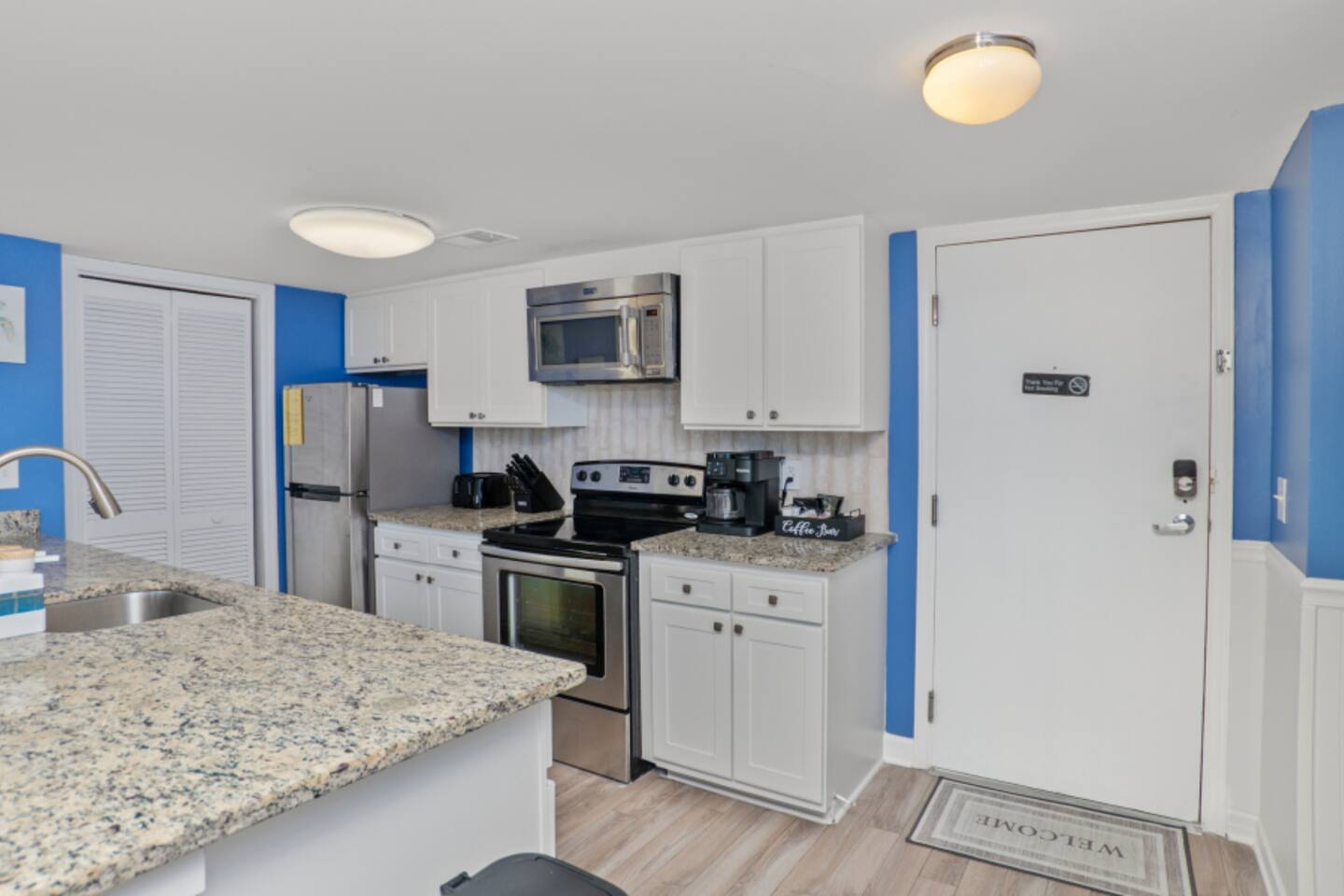 This condo is located on the 3rd floor. Please note: the building does not have an elevator. Per HOA rules: • Primary renter must be at least 23 years old • No pets permitted Coin-operated washers and dryers are available within the resort. There is not a washer or dryer inside the condo. The TV includes DirecTV and access to streaming apps (log in with your own accounts). A welcome binder is included inside the condo on the kitchen counter with more information about nearby restaurants, and attractions. Also inside the binder is a map of the resort. The Myrtle Beach Resort charges a gate/parking fee that is paid directly to the resort at the time of arrival or through their online portal. In-Season Rates (April – September): Car/Truck: $5 per day or $50 per month Motorcycle: $5 per day or $50 per month Off-Season Rates (October – March): Car/Truck: $5 per day or $30 per month Motorcycle: $5 per day or $30 per month Motorcycle Trailer: $100 per week (sold only in weekly increments)